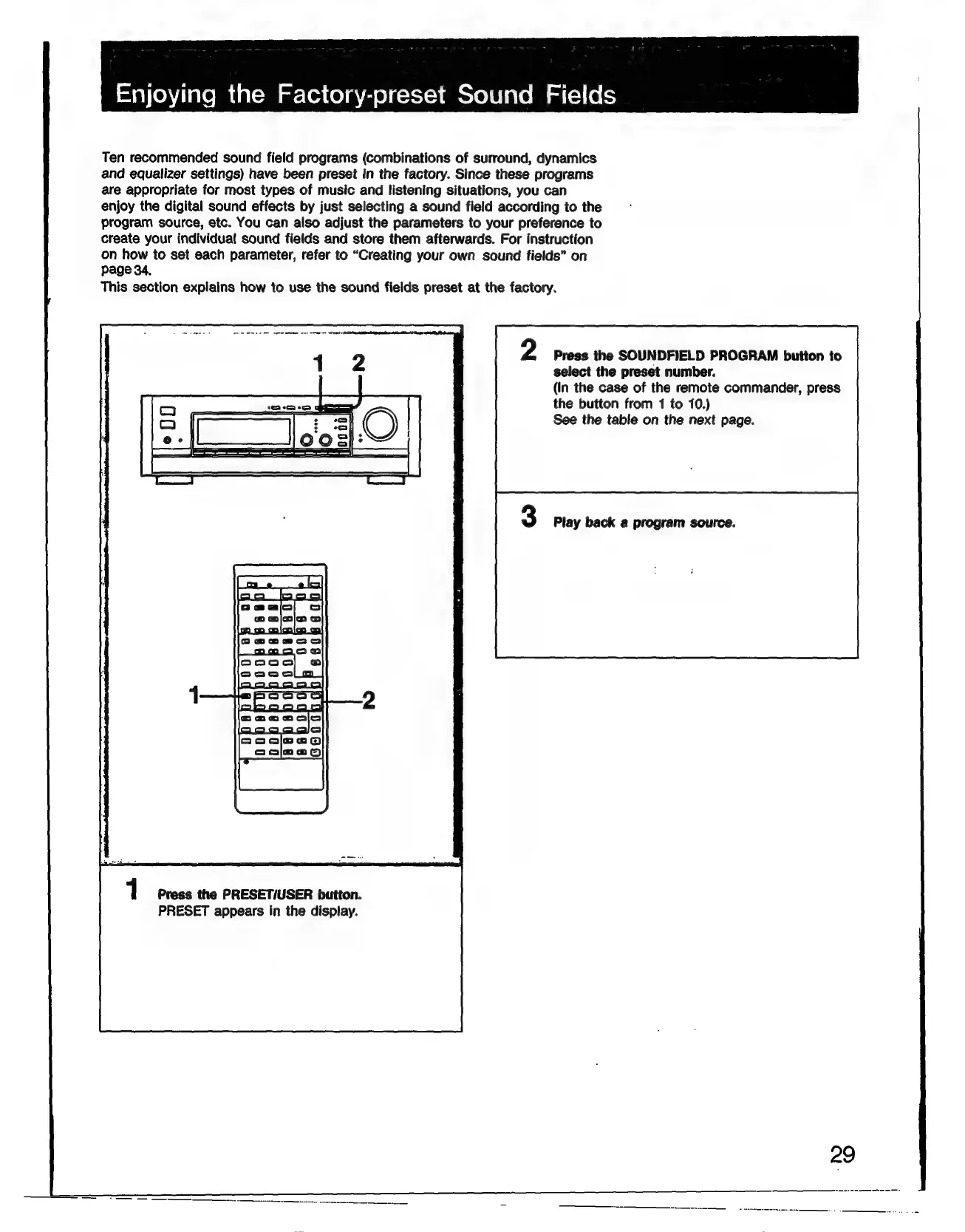 Sony TA-E2000ESD - Factory-Preset Sound Fields; Selecting and Using Presets