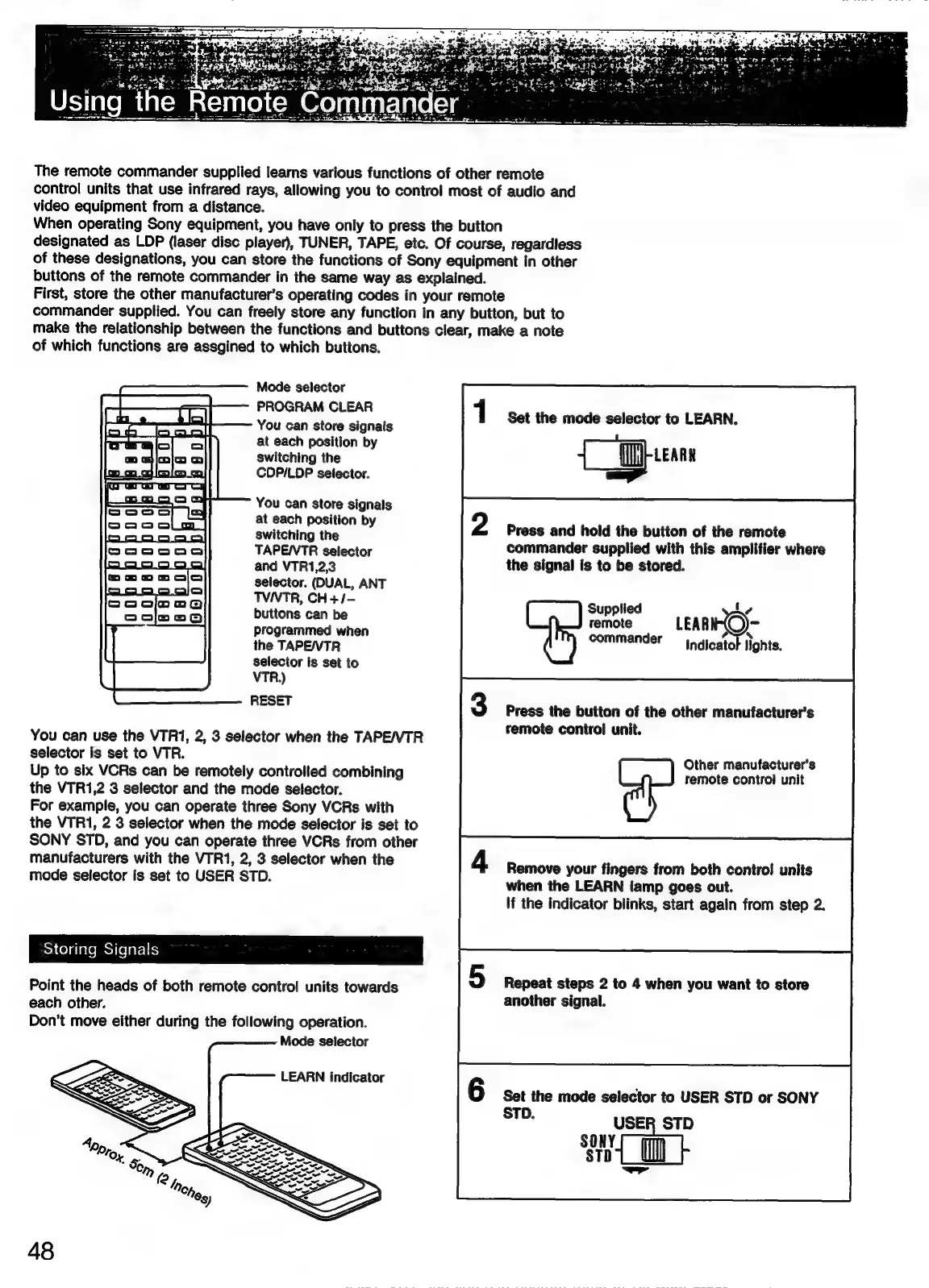 Sony TA-E2000ESD - Remote Commander Operation; Learning and Storing Signals