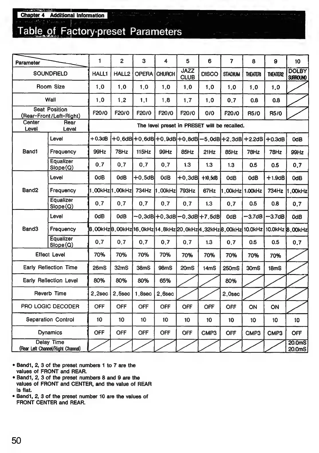 Sony TA-E2000ESD - Additional Information and Troubleshooting; Factory Presets and Specifications