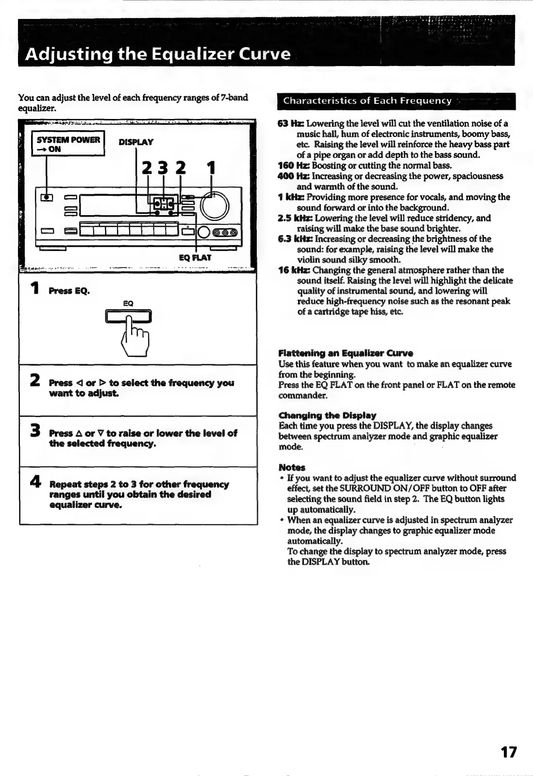 Sony TA-E741 - Adjusting the Equalizer Curve; Frequency Response Characteristics; Flattening and Displaying Equalizer