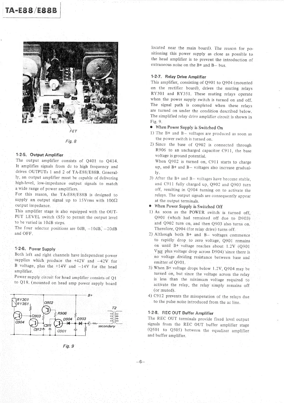 Sony TA-E88 - Output, Power Supply, and Relay Circuits