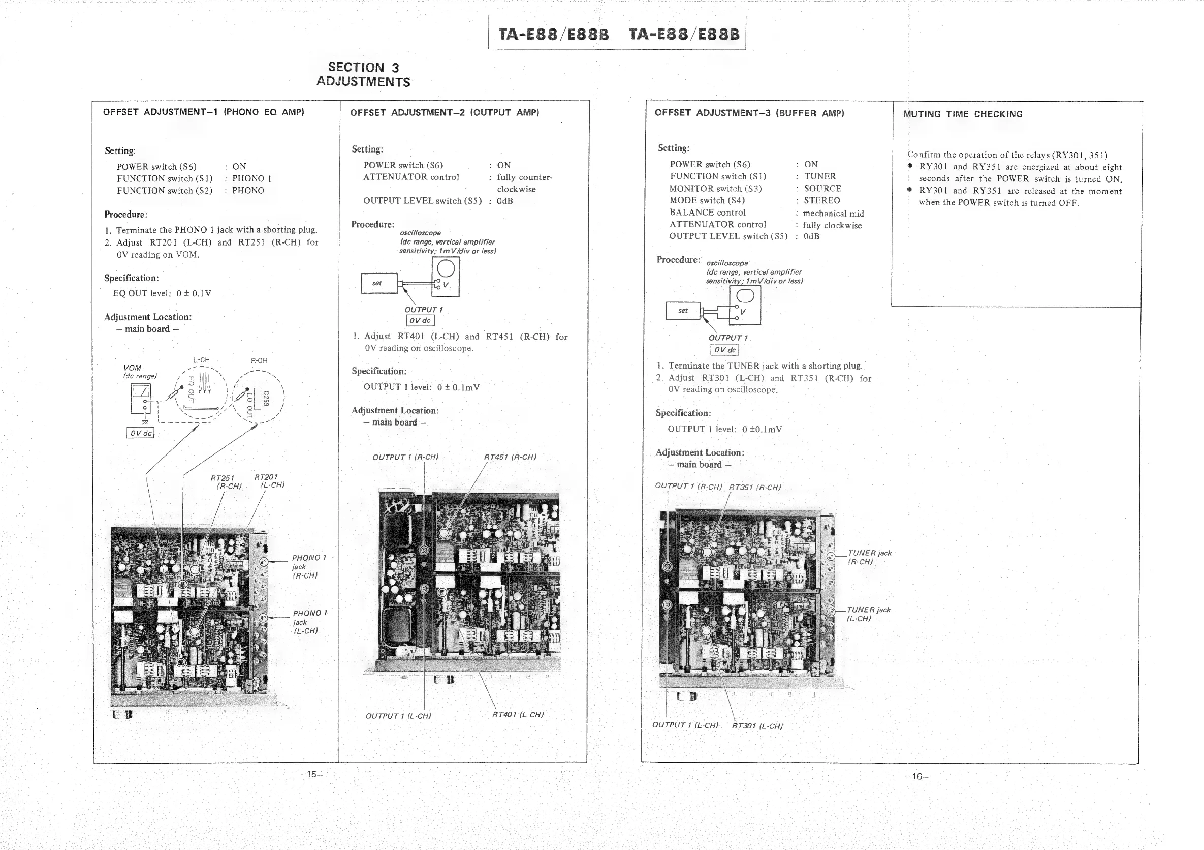 Sony TA-E88B - Section 3 Adjustments; Phono EQ Amp Offset Adjustment; Output Amp Offset Adjustment; Buffer Amp Offset Adjustment