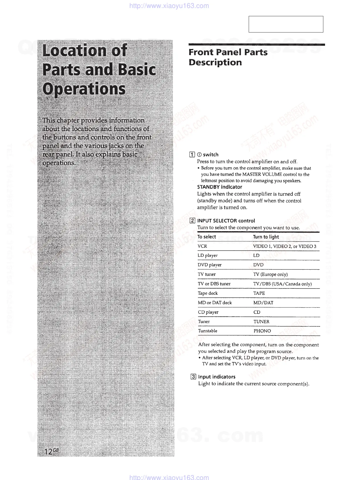Sony TA-E9000ES - General Information; Front Panel Controls and Operations