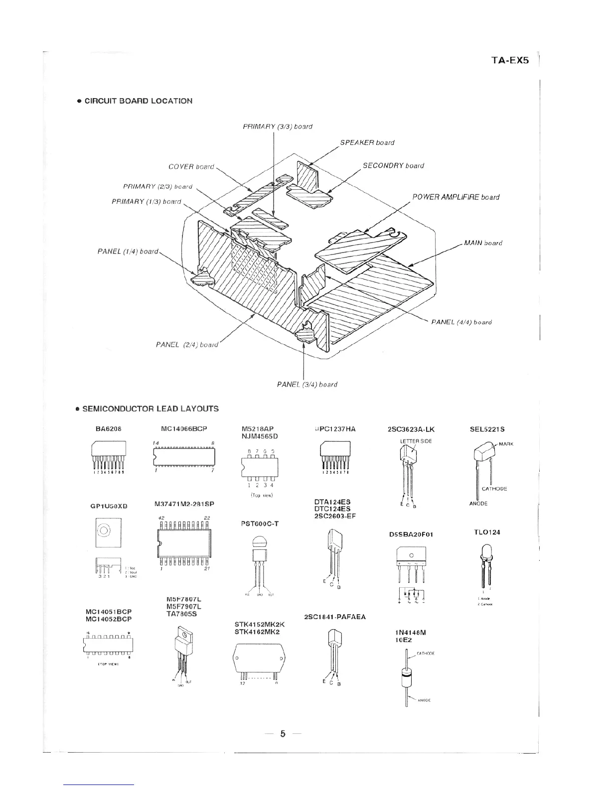 Sony TA-EX5 - Circuit Board Location; Semiconductor Lead Layouts