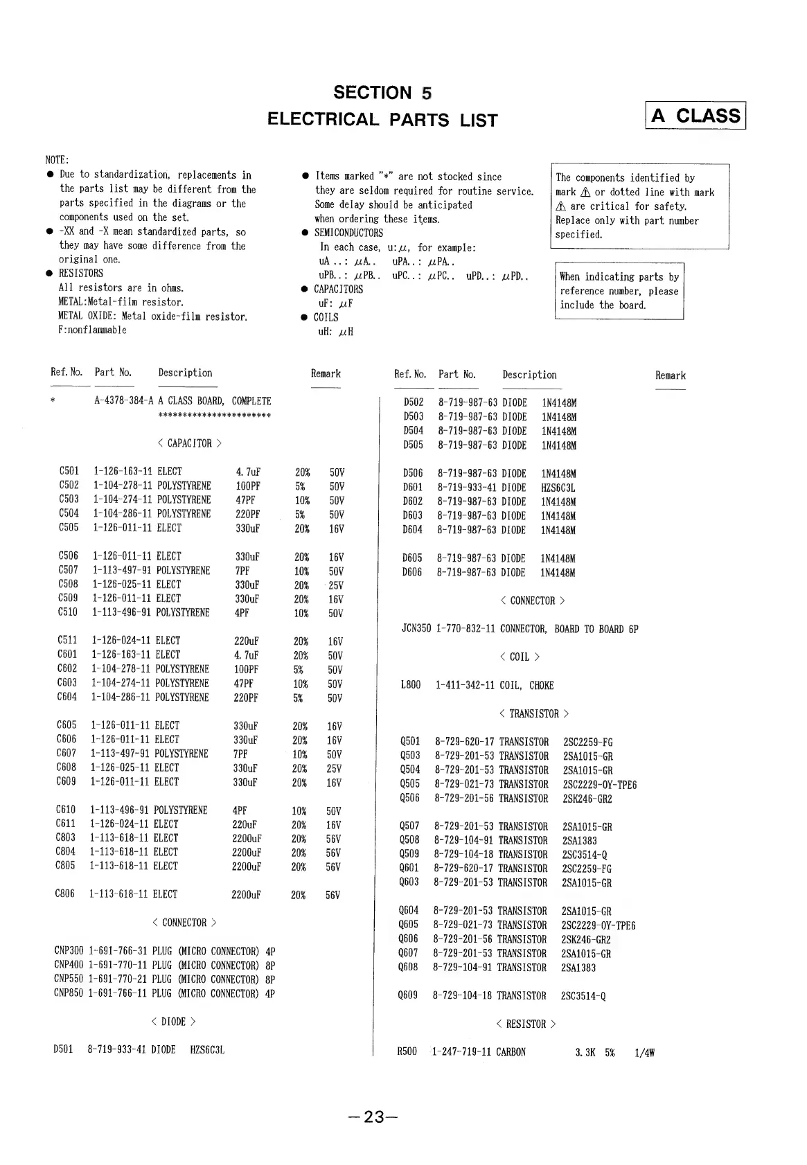 Sony TA-FA3ES - Electrical Parts List; A Class Board Components