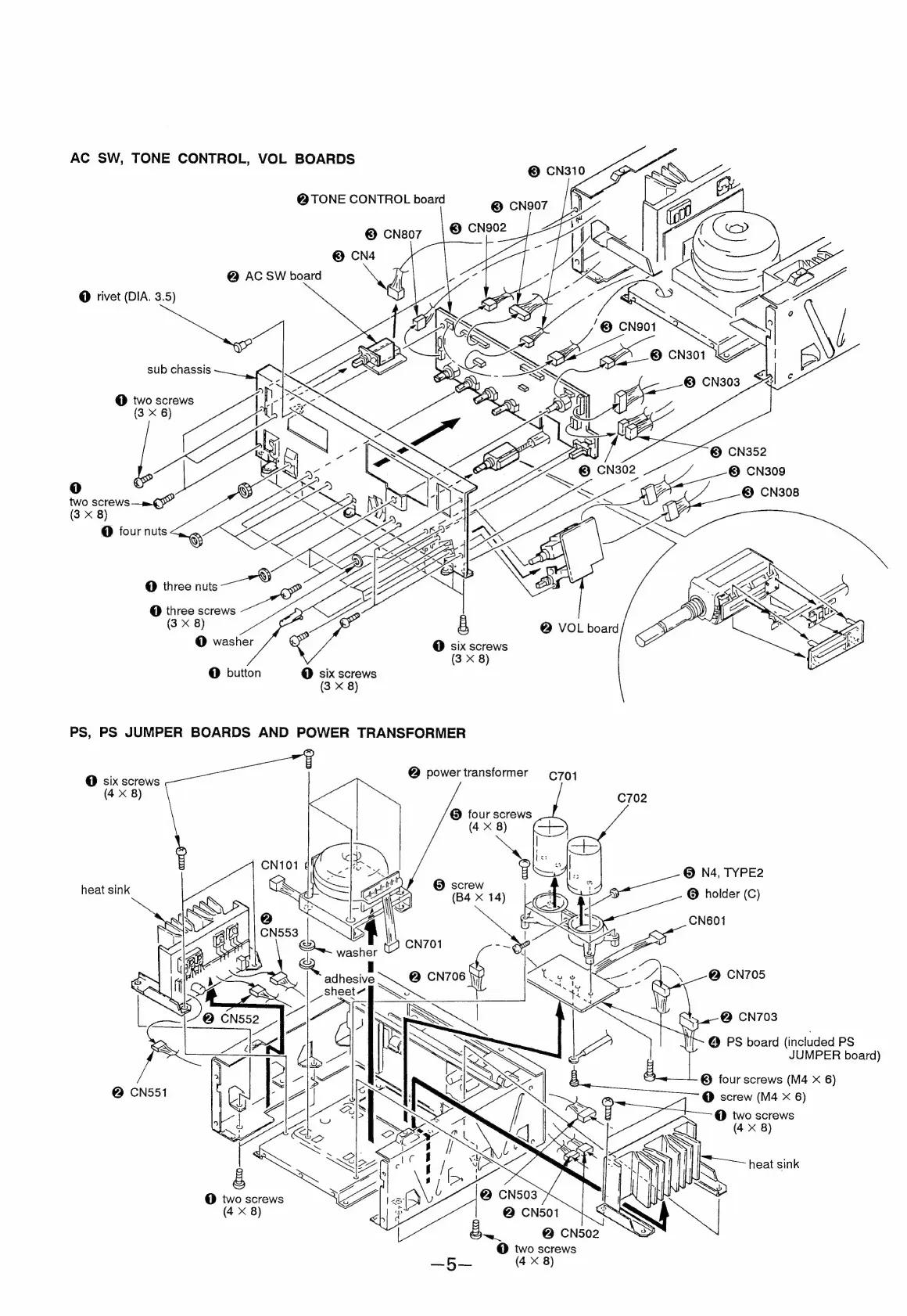 Sony TA-FA5ES - Internal Component Disassembly; Disassembly of Control and Power Boards; Disassembly of Power Supply and Associated Boards