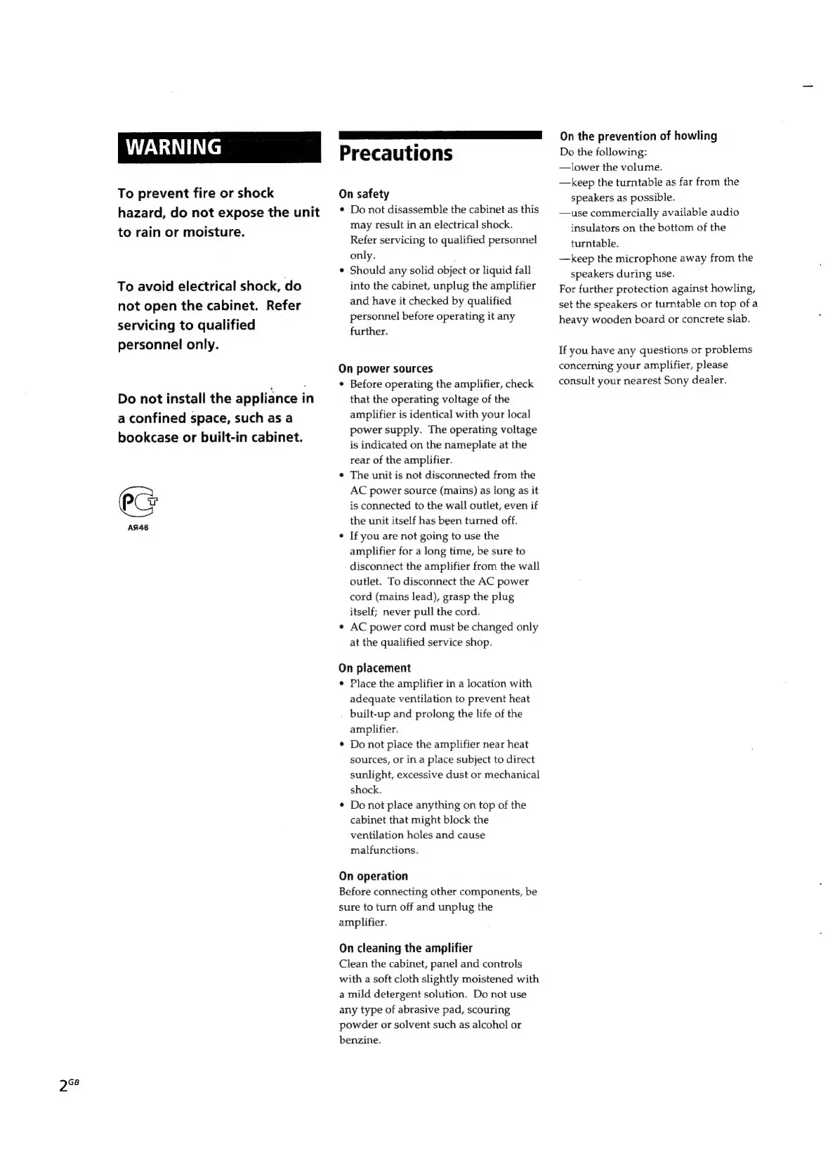 Sony TA-FE330R - Precautions; On safety; On power sources; On placement