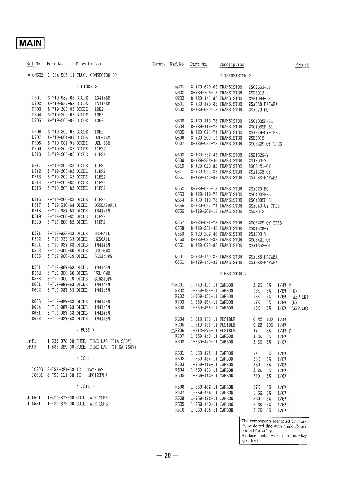 Sony TA-S2 - TRANSISTORS, DIODES, and FUSES; ICs and COILS; RESISTORS