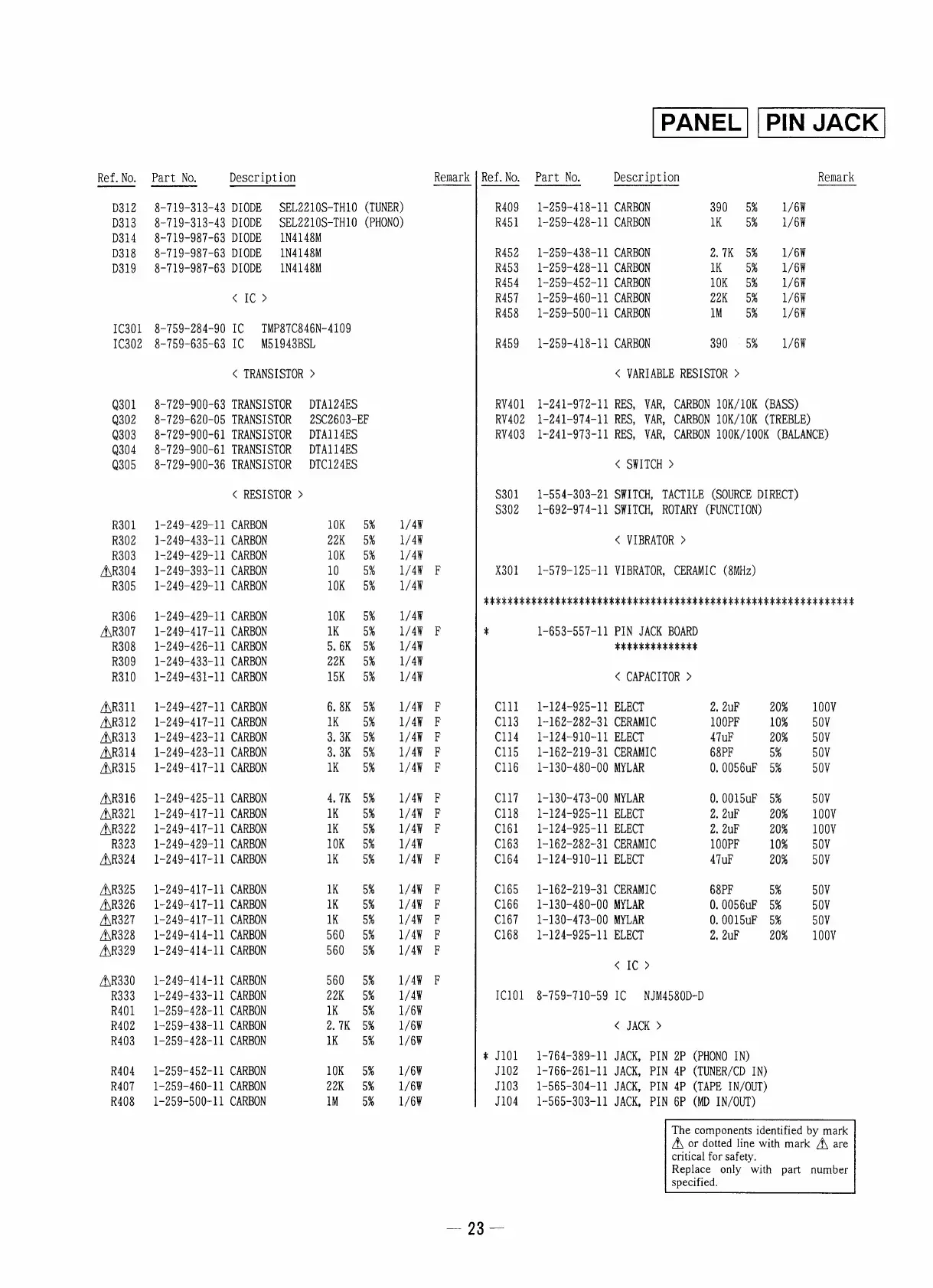 Sony TA-S2 - ICs, TRANSISTORS, and RESISTORS; VARIABLE RESISTORS, SWITCHES, and VIBRATORS; CAPACITORS and DIODES