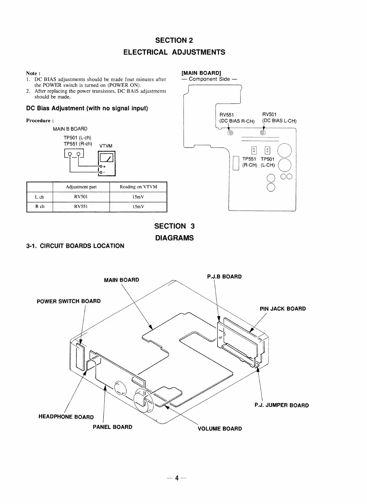 Sony TA-S2 - SECTION 2 ELECTRICAL ADJUSTMENTS; DC Bias Adjustment Procedure; SECTION 3 DIAGRAMS; CIRCUIT BOARDS LOCATION
