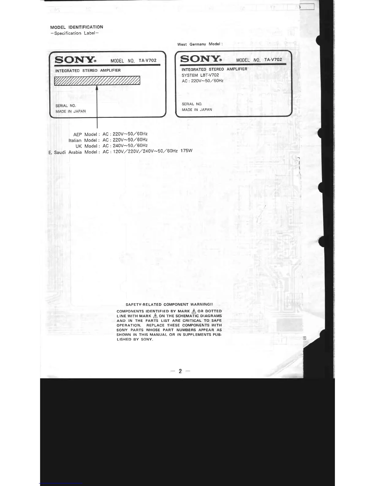 Sony TA-V702 - Model Identification
