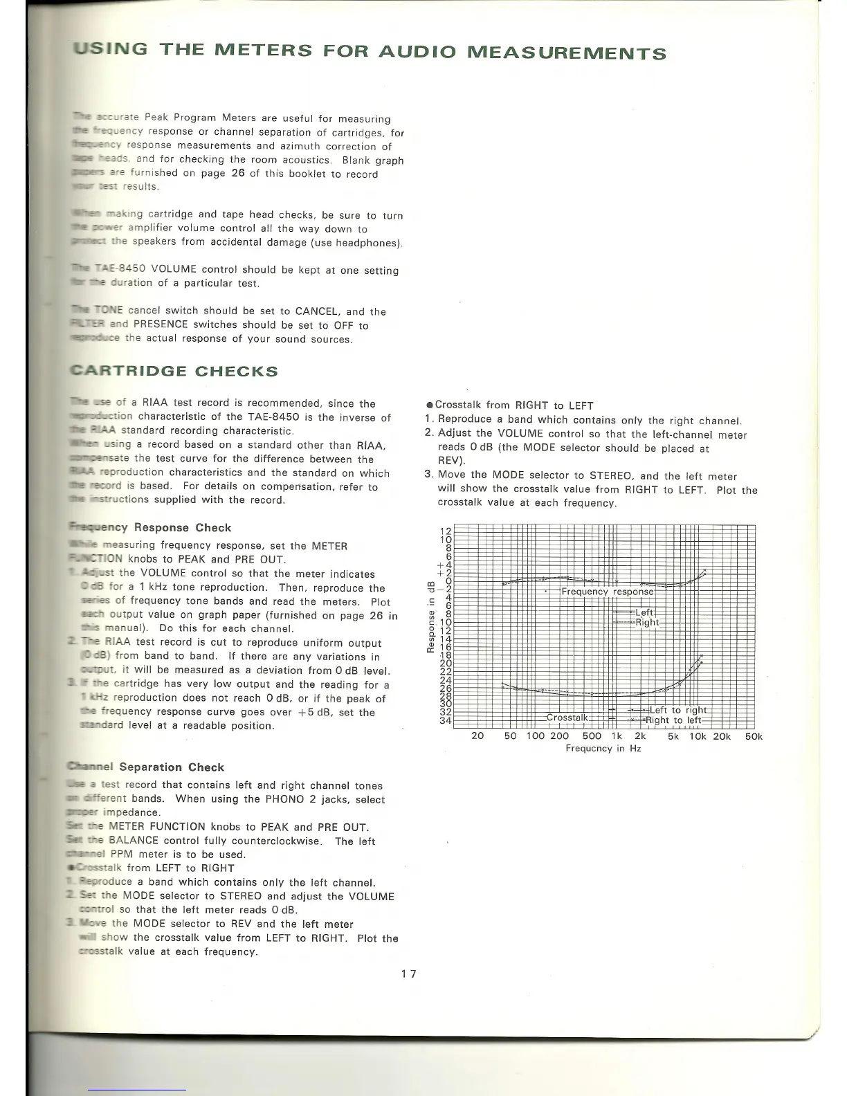Sony TAE-8450 - Using the Meters for Audio Measurements; Cartridge Checks