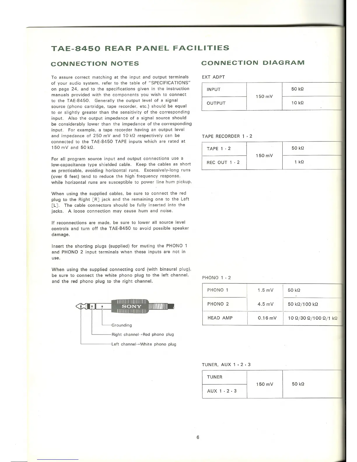 Sony TAE-8450 - TAE-8450 Rear Panel Facilities; Connection Notes; Connection Diagram