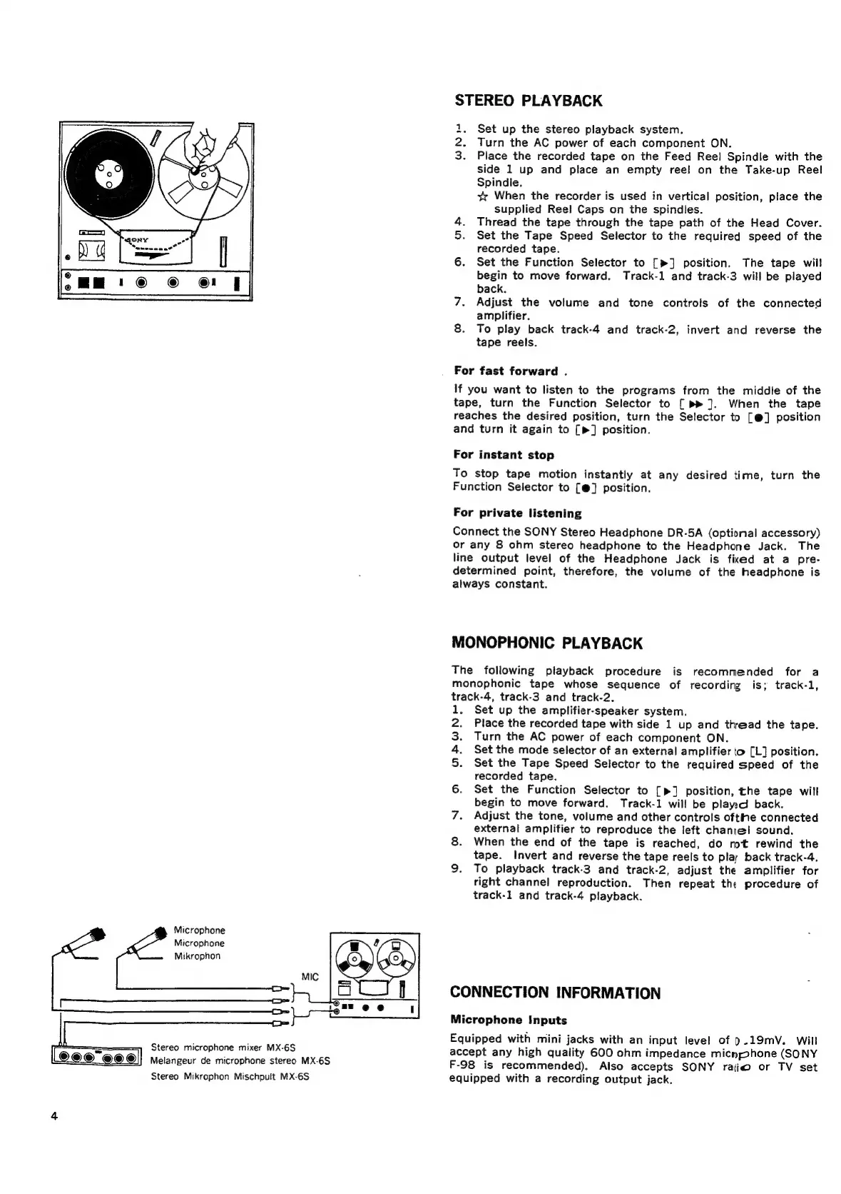 Sony TC-252 D - TC-252 D Tape Operations Guide; Playback Procedures