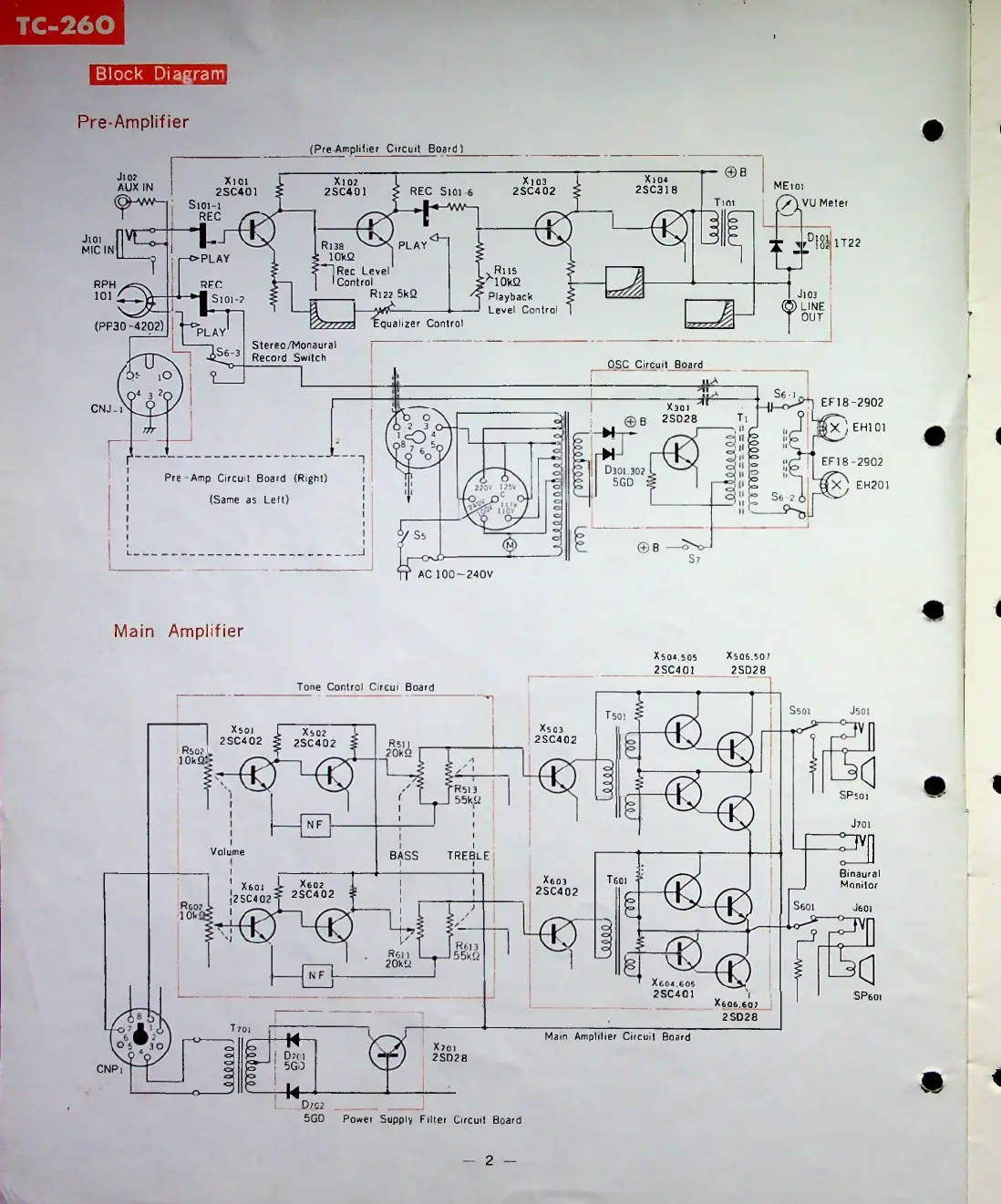 Sony TC-260 - TC-260 Block Diagrams; Pre-Amplifier Block Diagram; Main Amplifier Block Diagram