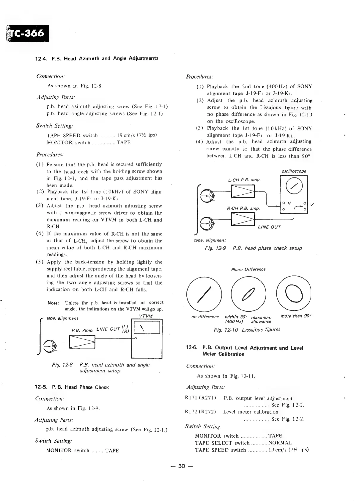 Sony TC-366 - P.B. Head Azimuth and Angle Adjustments