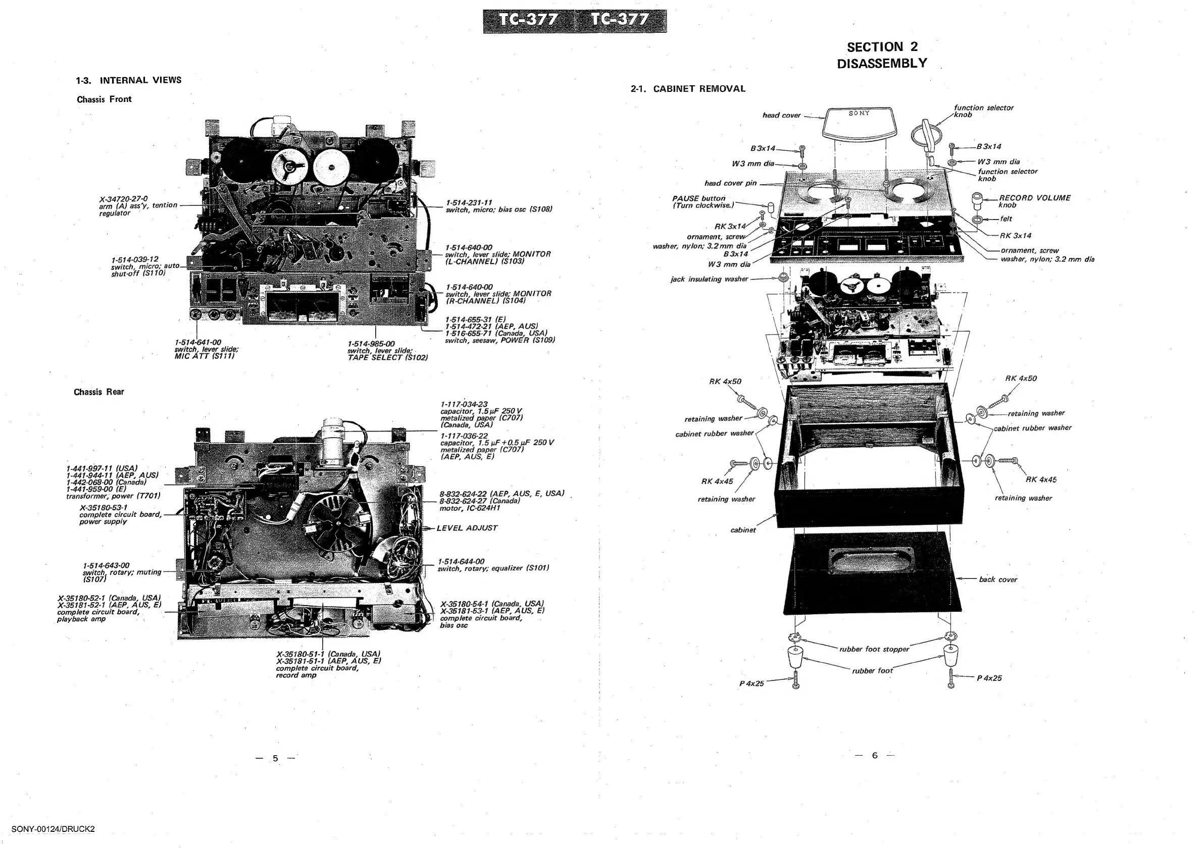 Sony TC-377 - 1-2. Major Parts Location; 1-3. Internal Views