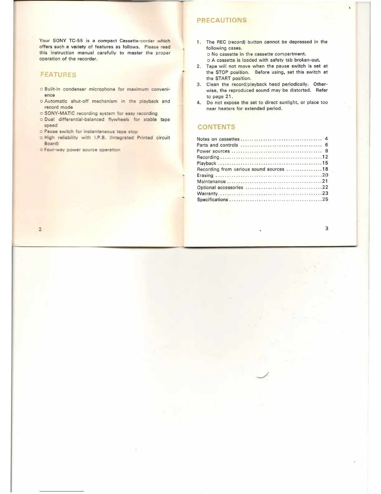 Your SONY TC-55 is a compact Cassette-corder which