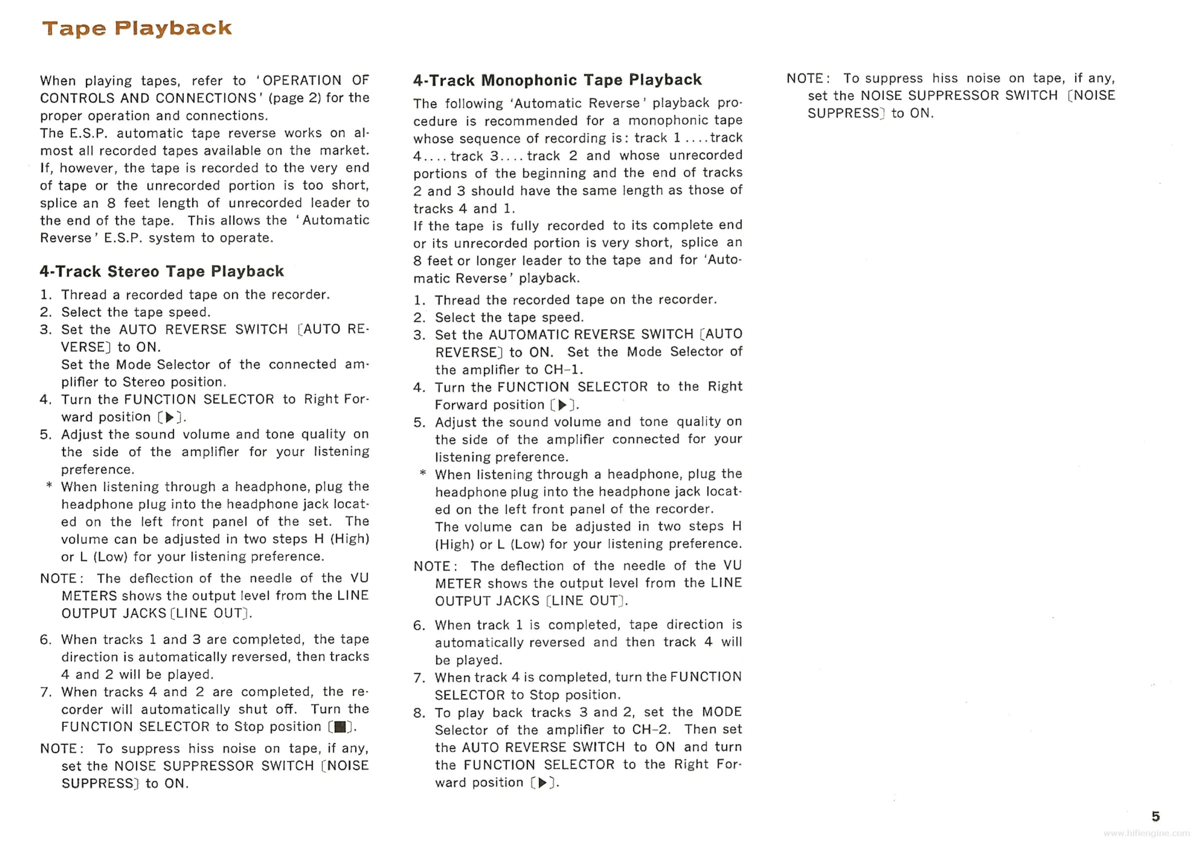 Sony TC-560D - Tape Playback; 4-Track Stereo Tape Playback; 4-Track Monophonic Tape Playback