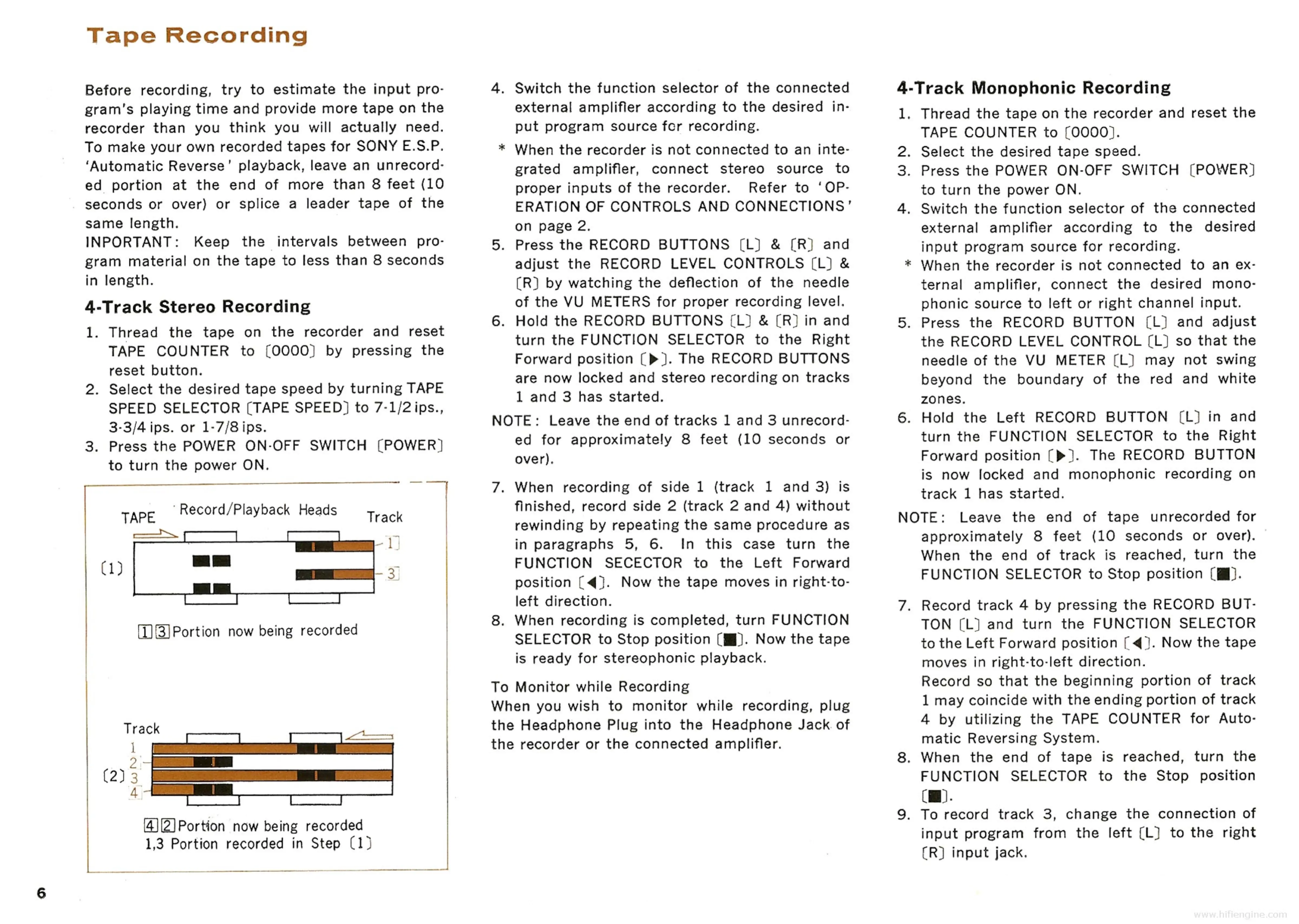 Sony TC-560D - Tape Recording; 4-Track Stereo Recording; 4-Track Monophonic Recording