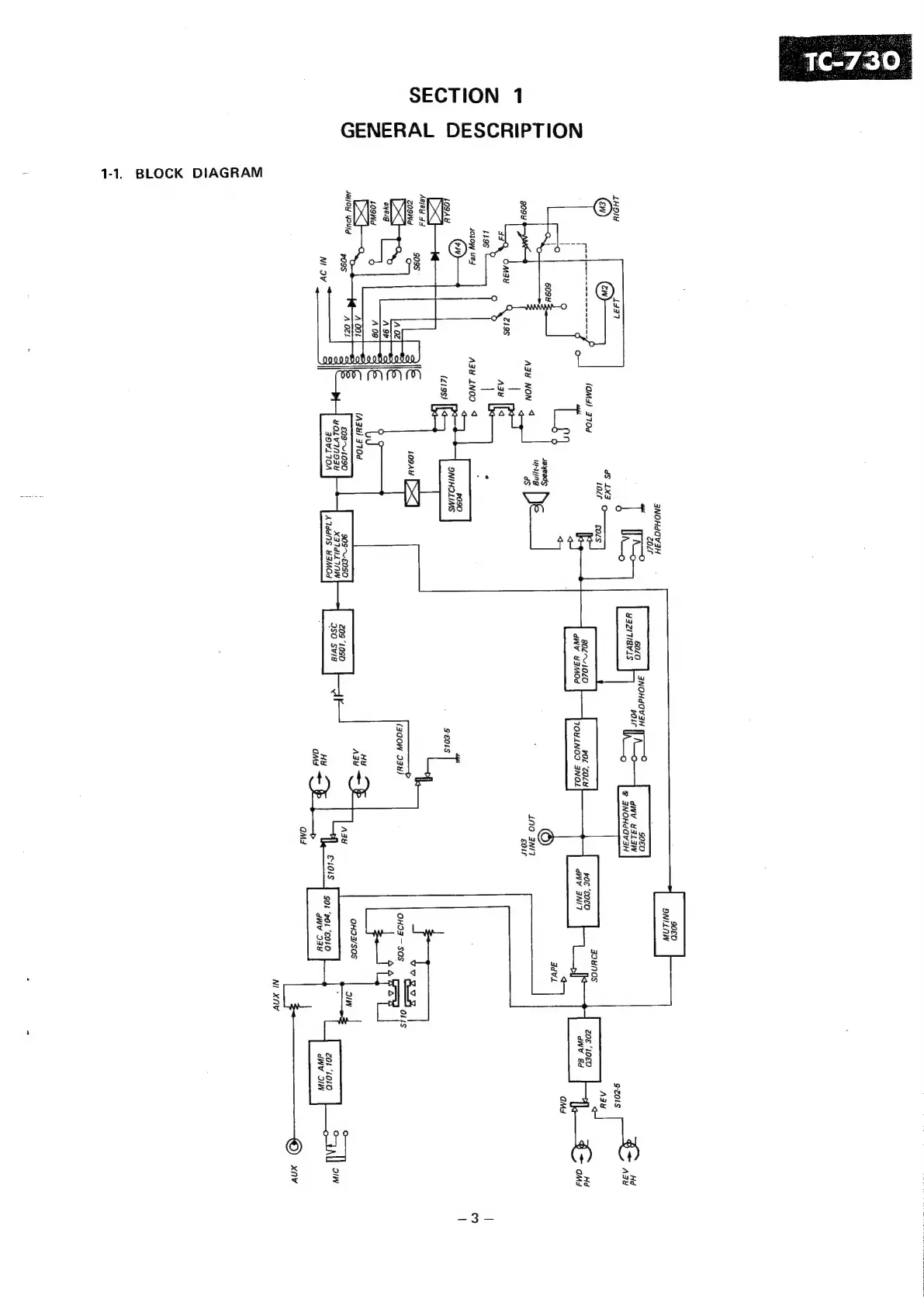 Sony TC-730 - Section 1: General Description; 1-1. Block Diagram