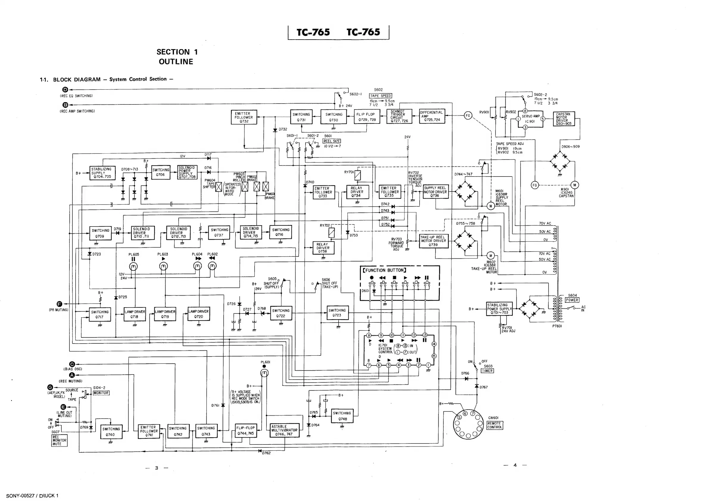 Sony TC-765 - Section 1: Outline Diagrams; Block Diagram - System Control Section