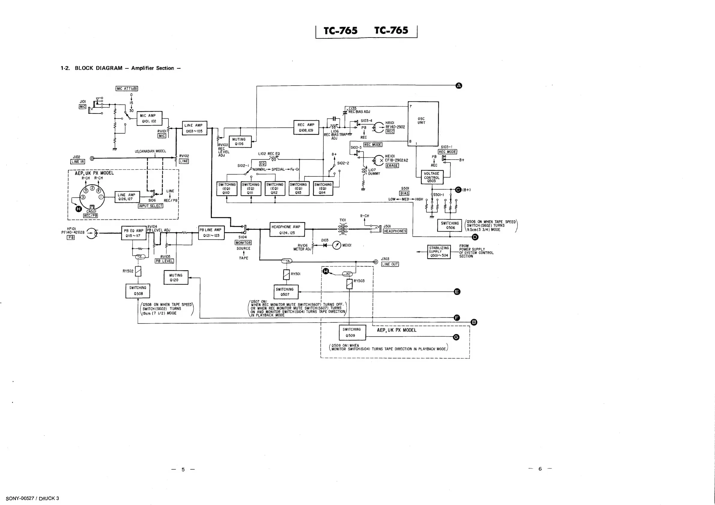 Sony TC-765 - Section 1: Amplifier Block Diagram; Block Diagram - Amplifier Section