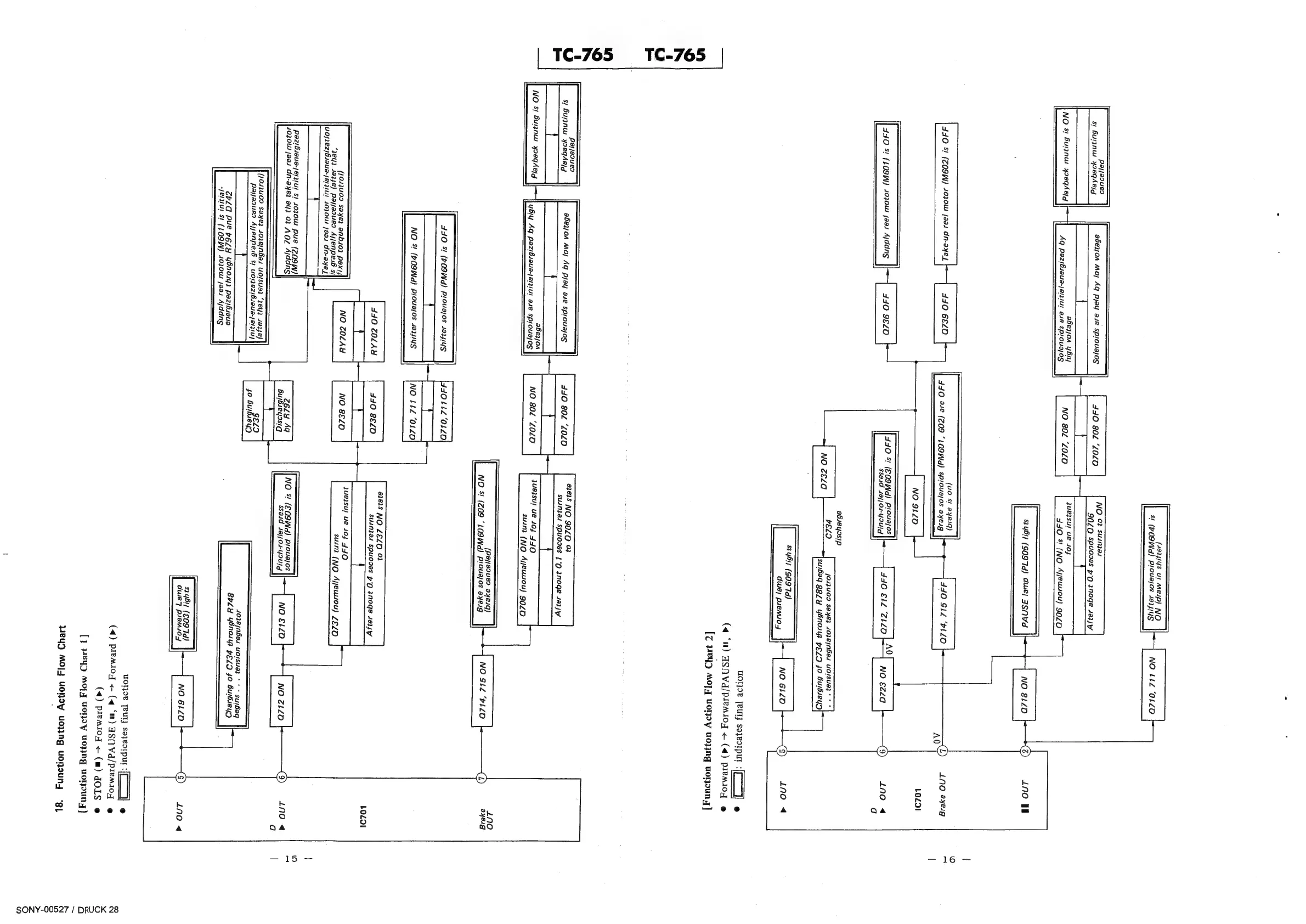 Sony TC-765 - Function Button Action Charts