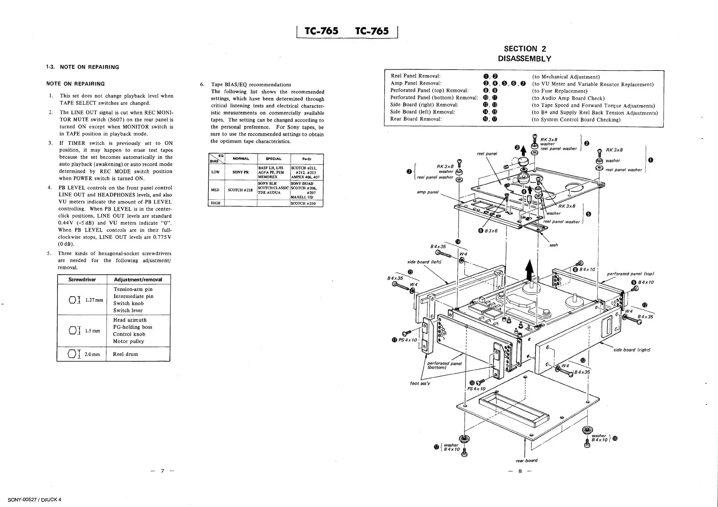 Sony TC-765 - Section 2: Disassembly and Repair; Notes on Repair and Tape Recommendations