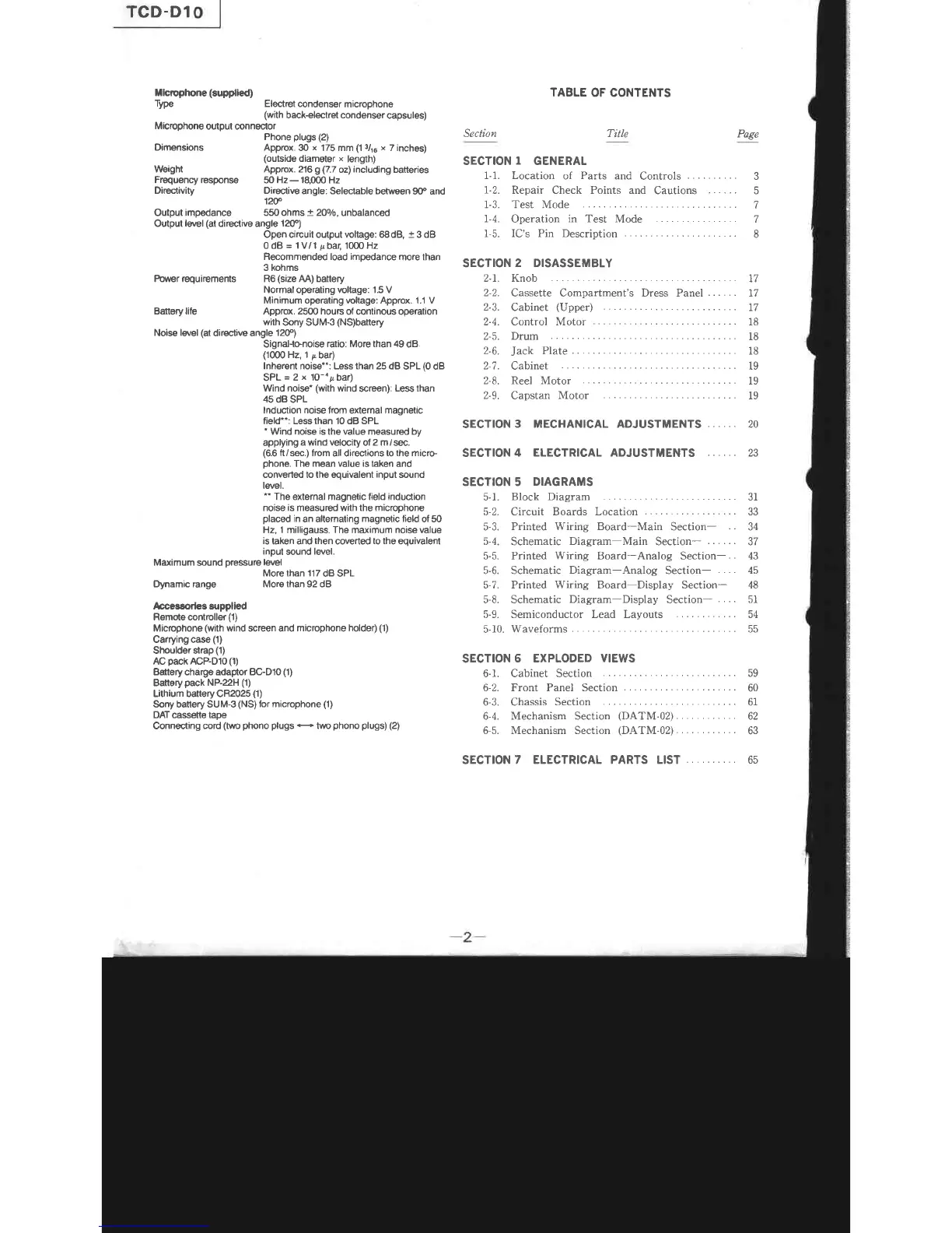 Sony TCD-D10 - SECTION 1 GENERAL; Parts and Controls Overview; Repair and Test Mode Procedures; IC Pin Descriptions