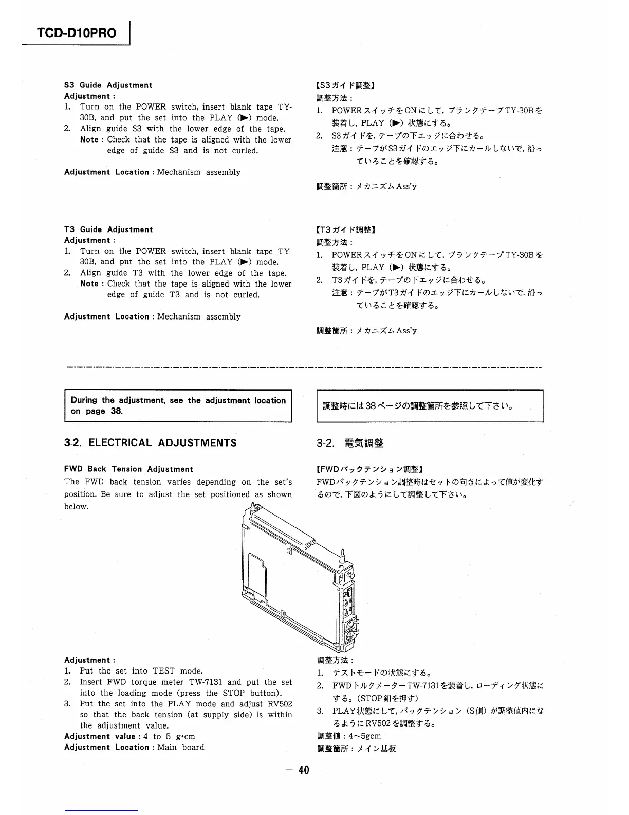 Sony TCD-D10PRO - S3 Guide Adjustment; T3 Guide Adjustment; FWD Back Tension Adjustment