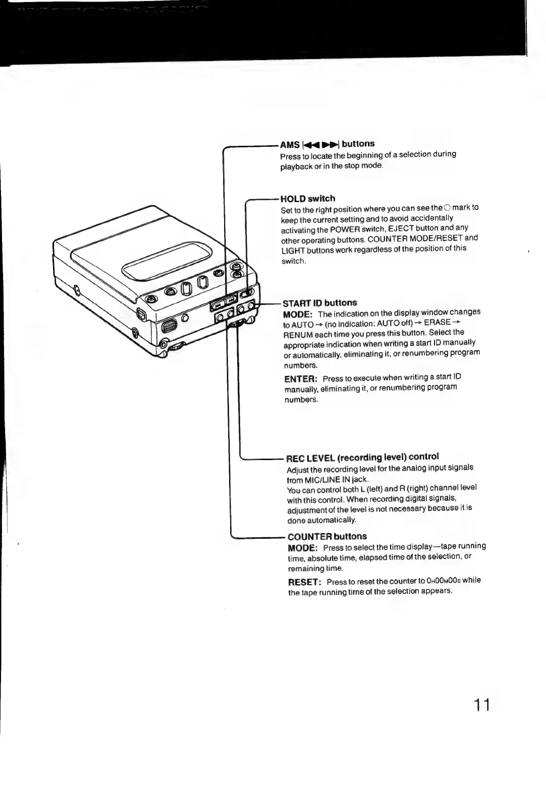 Sony TCD-D3 - Operational Buttons and Level Controls
