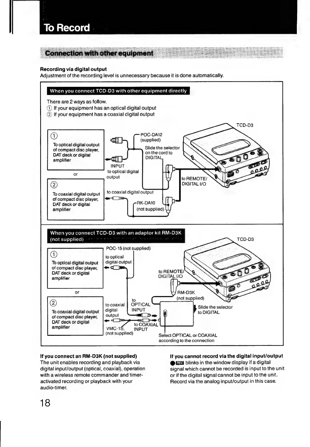 Sony TCD-D3 - Recording Procedures; Digital and Analog Input Connections
