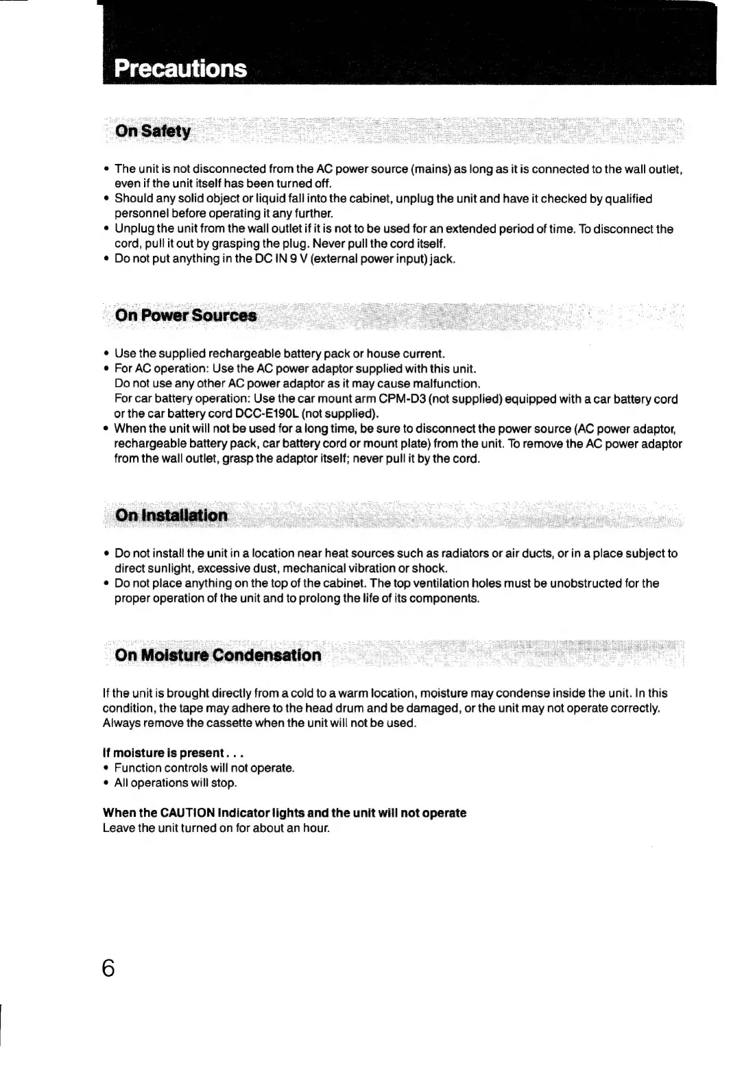 Sony TCD-D3 - Precautions and Safety; On Safety; On Power Sources; On Installation