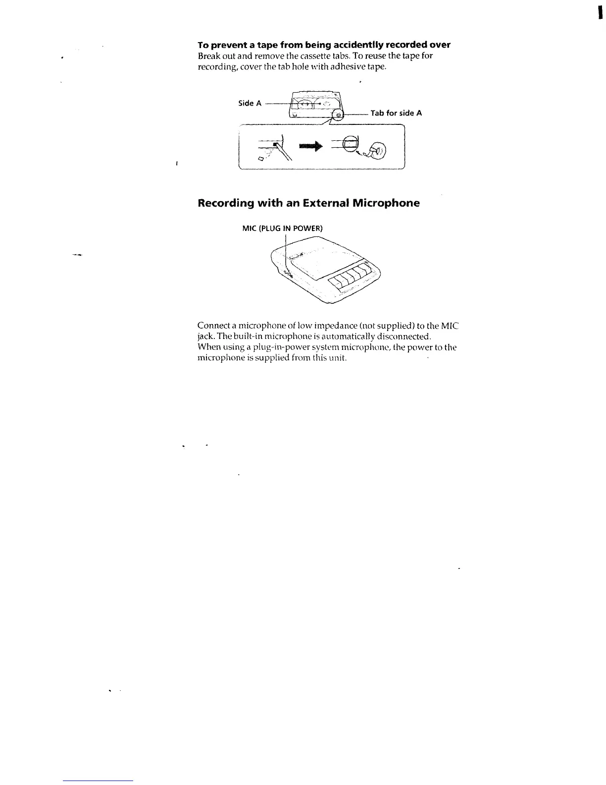 Sony TCM-929 - Recording with an External Microphone; External Microphone Connection