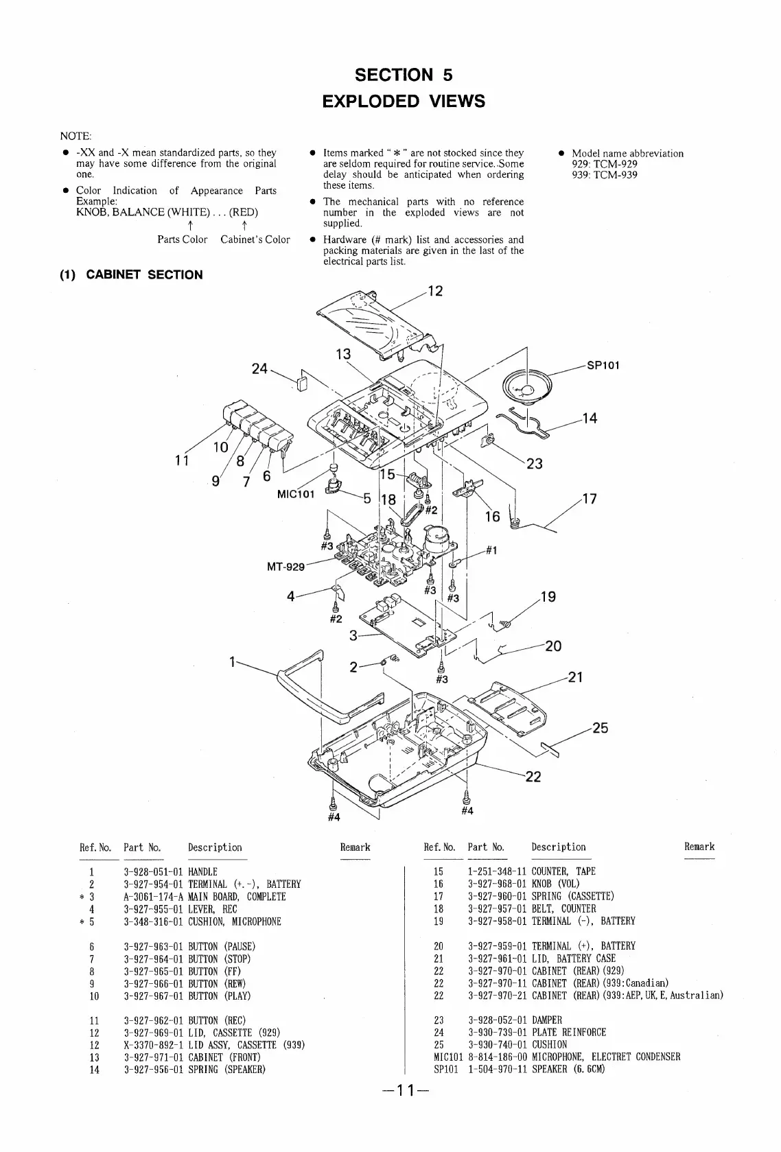 Sony TCM-939 - Section 5: Exploded Parts Views; Cabinet Section Exploded View