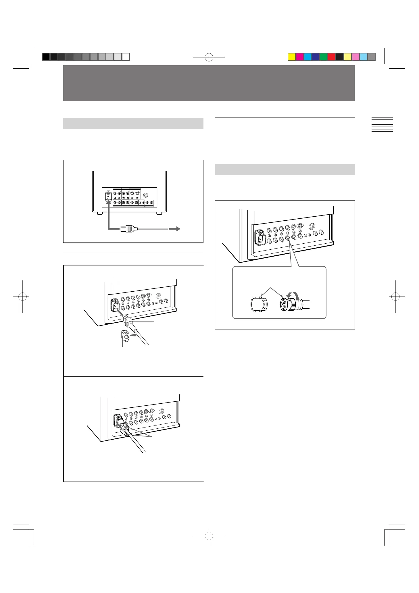 Sony TRINITRON BVM-14M4DJ - 電源コードの取り付けかた; 接続ケーブルの取り付けかた(Bnc型端子の場合