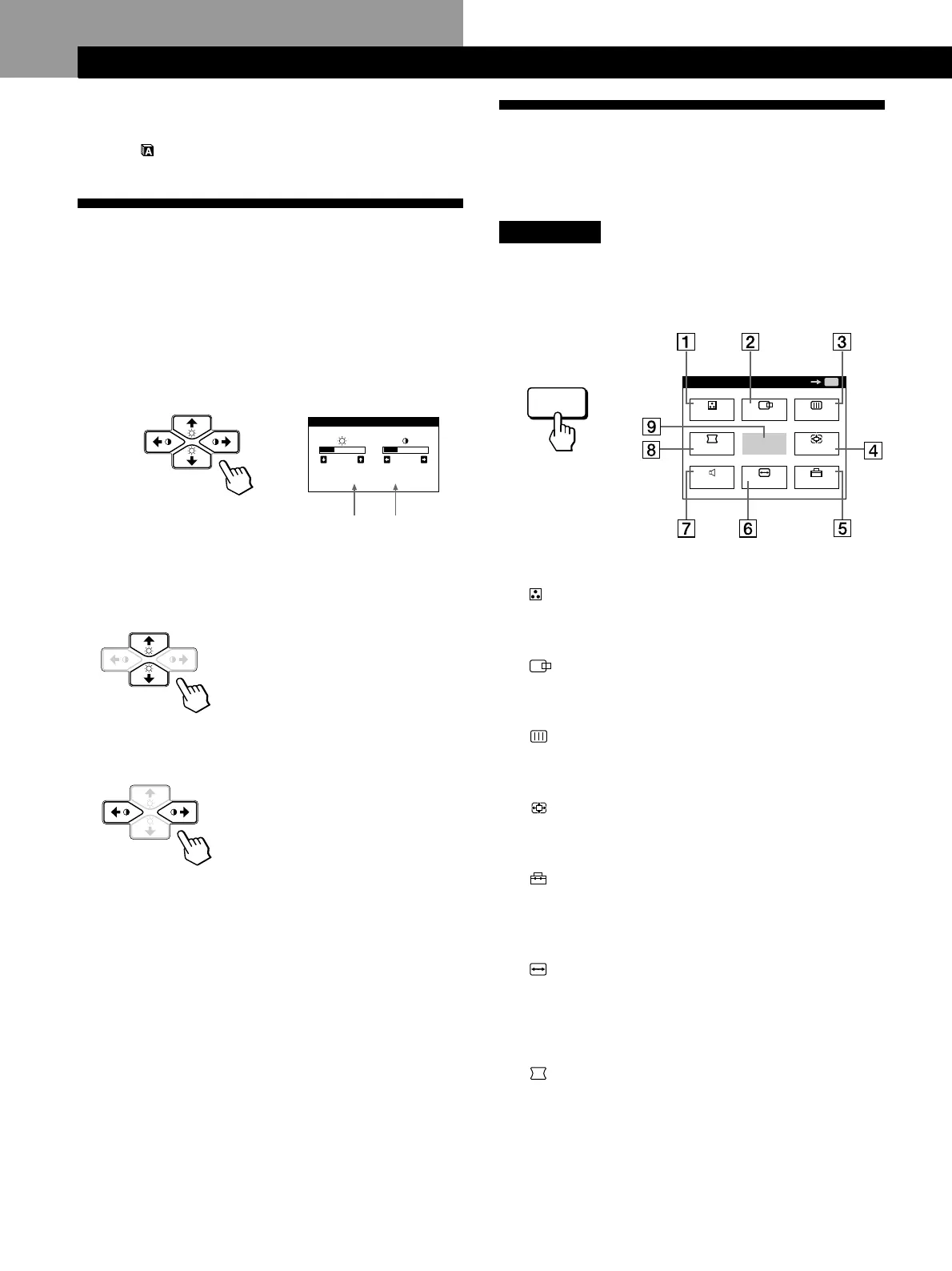 1 Press the ¨ (brightness) ./> or > (contrast) ?//