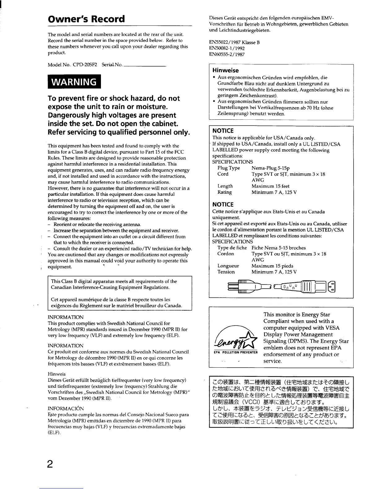 Sony Trinitron CPD-20SF2 - Page 2