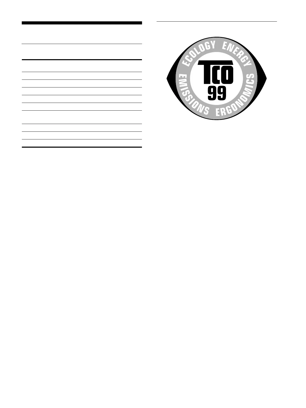 This product meets the requirements for the TCO’99 scheme
