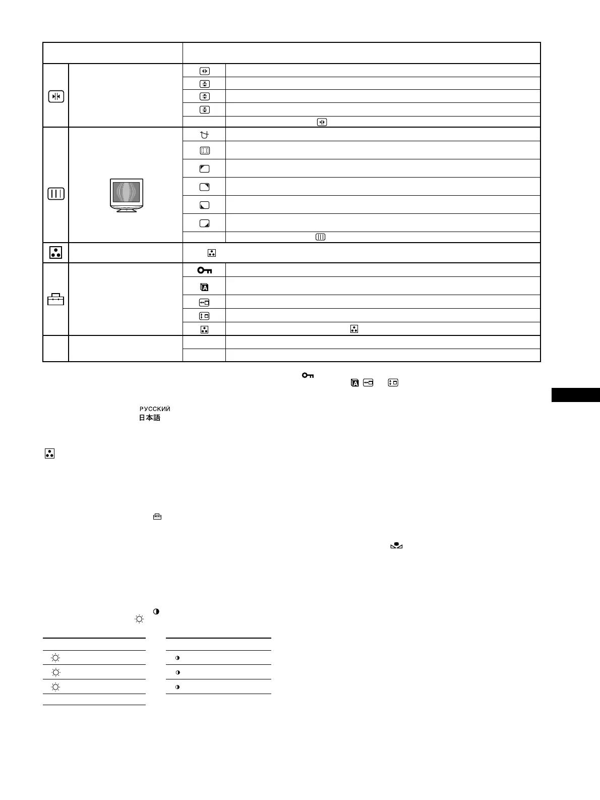 Bildschirmbereiche, BIAS ( ) zum Einstellen der dunklen