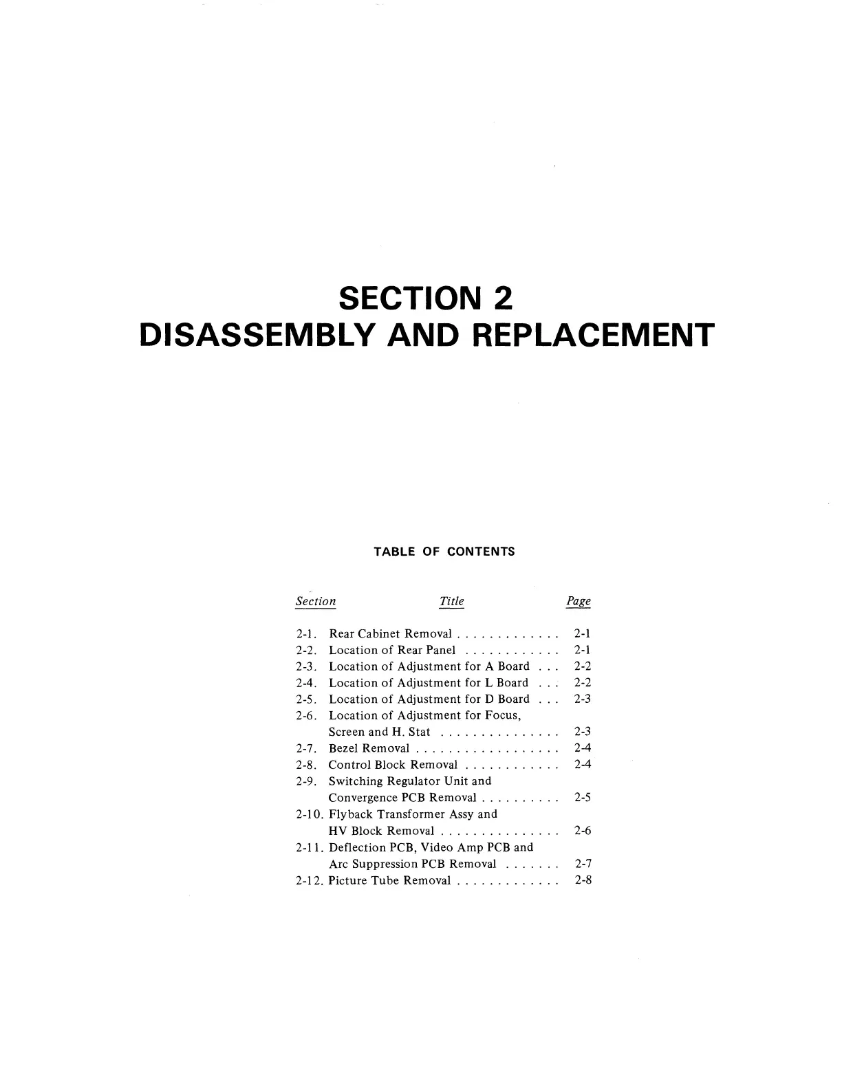 2-12. Picture Tube Removal . . . . . . . . . . .
