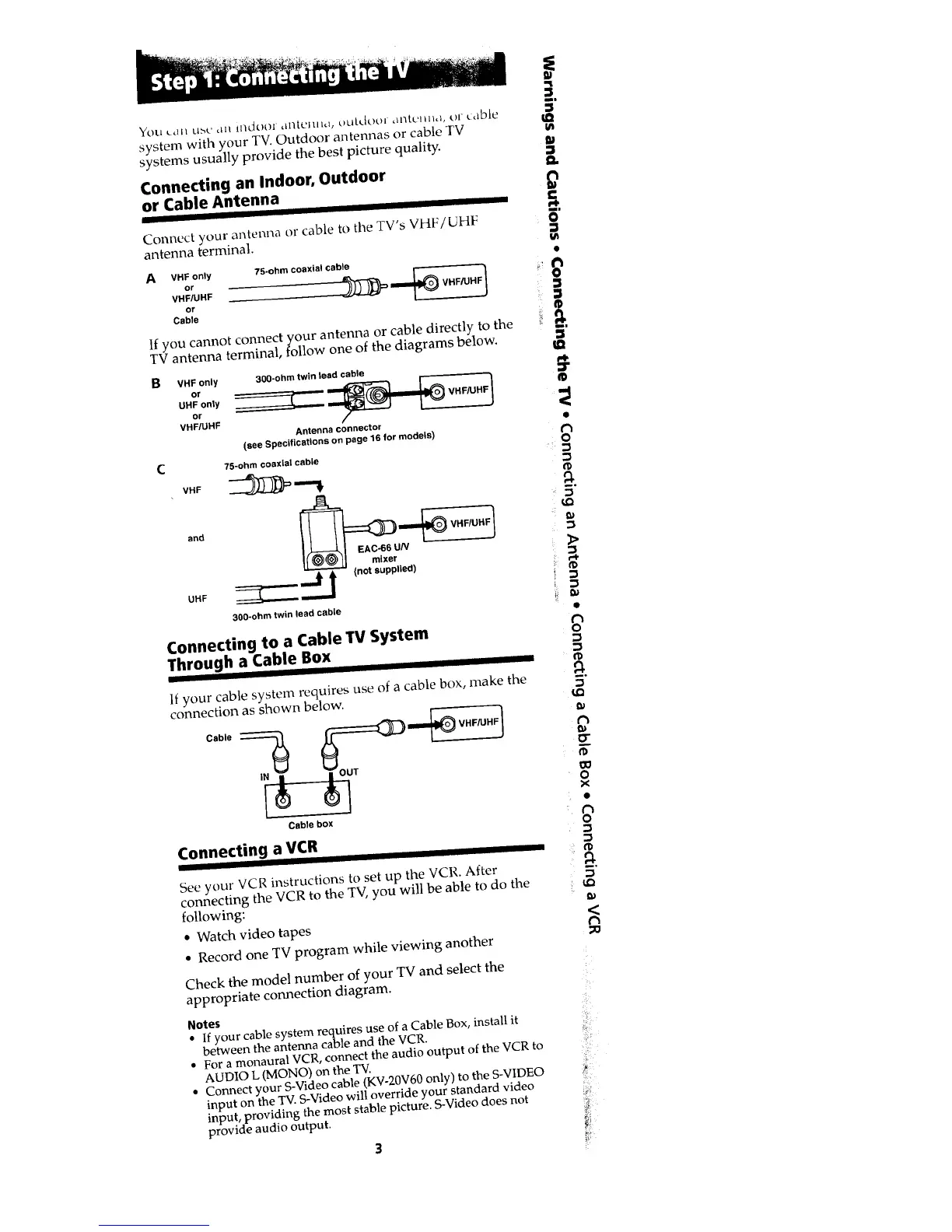 • Connect your S-Video cable (KV-20V60 only) to the S-VIDEO