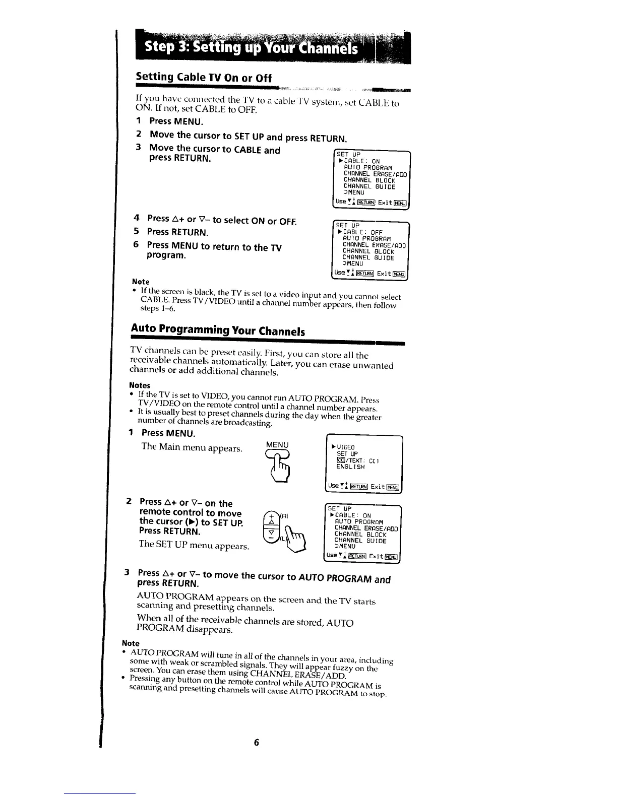 • AUTO PROGRAM will tune in all of the channels in your area, including