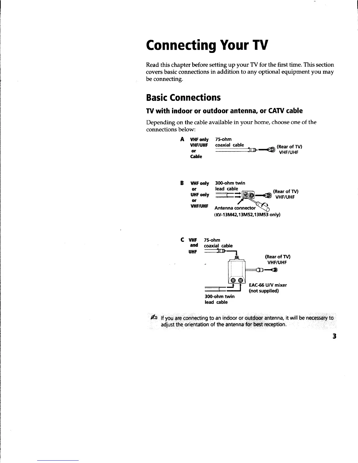 Sony Trinitron KV-13M42 - Connecting Your TV to Sources; Basic Antenna and Cable Connections