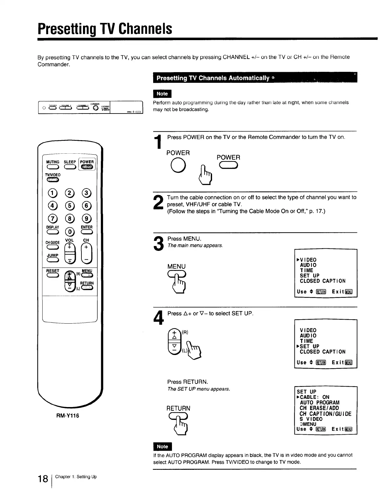 select AUTO PROGRAM. Press TV/VIDEO to change to TV mode.