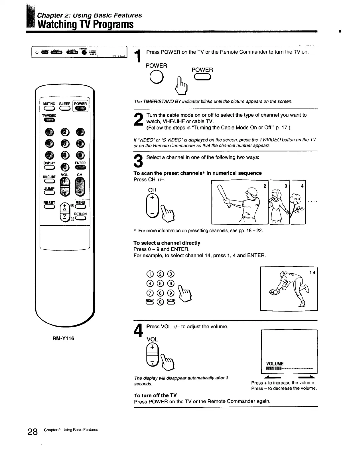The TIMER/STAND BY indicator blinks until the picture appears on the screen.