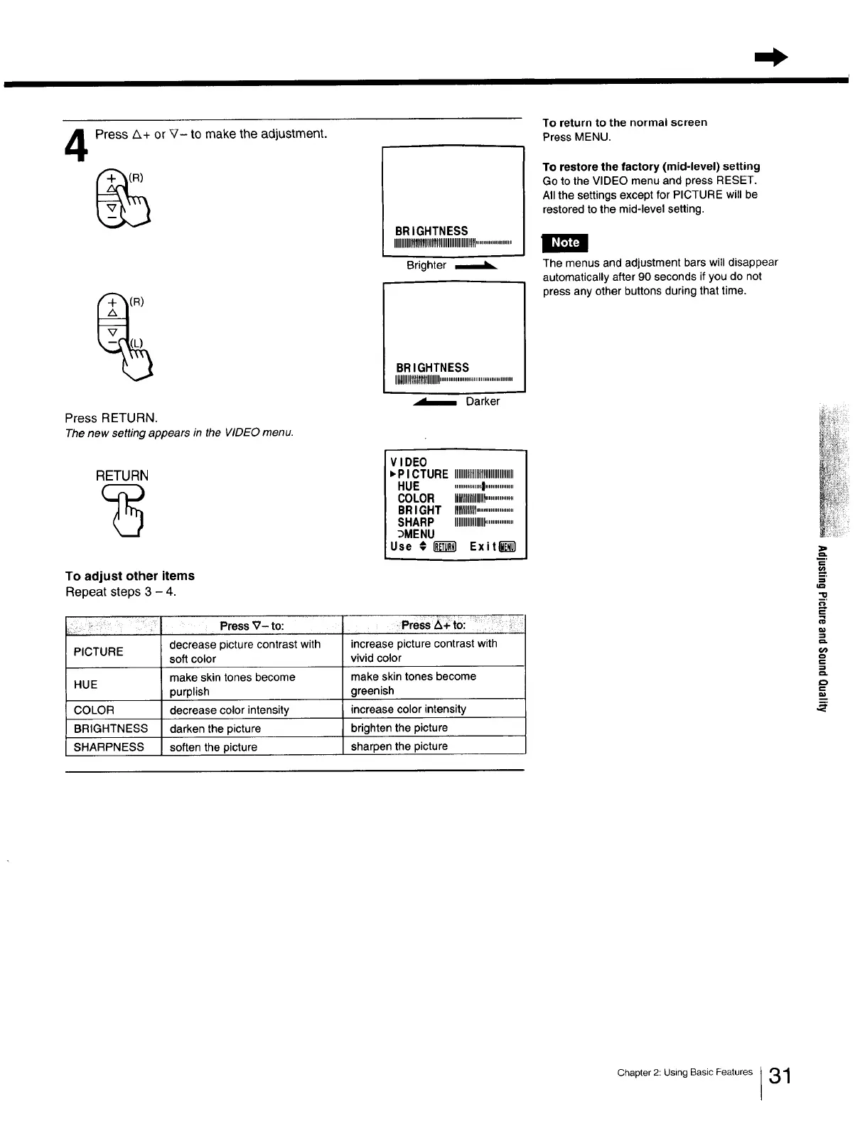 BRIGHTNESS darken the picture brighten the picture