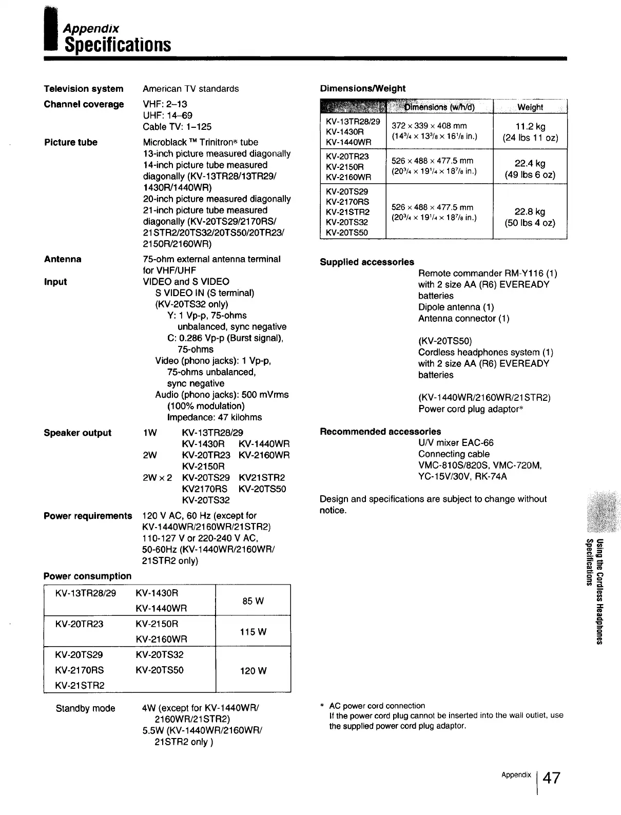 Standby mode 4W (except for KV-1440WR/