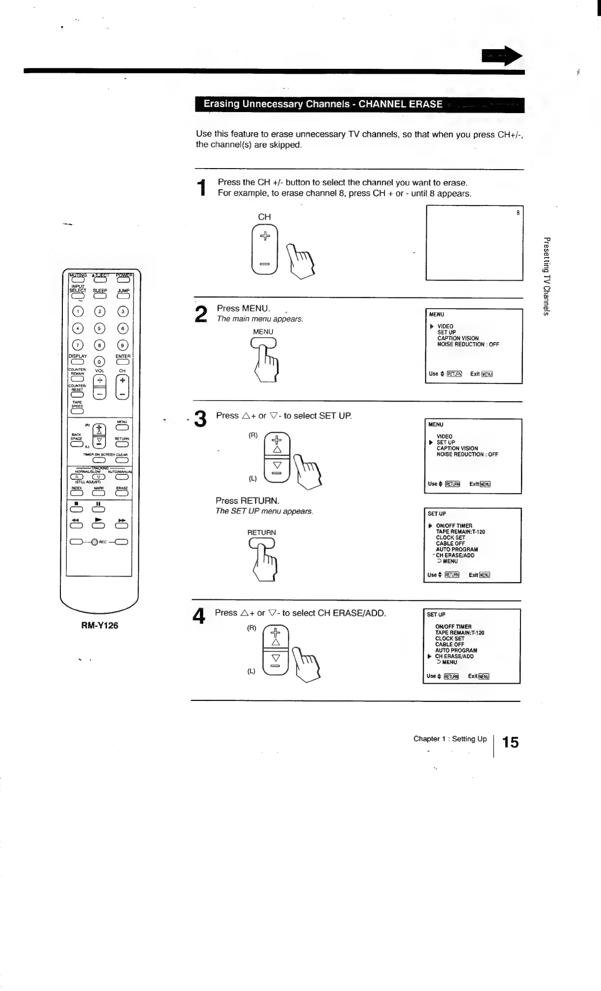 Sony Trinitron KV-13VM20 - Erasing Unnecessary Channels - CHANNEL ERASE